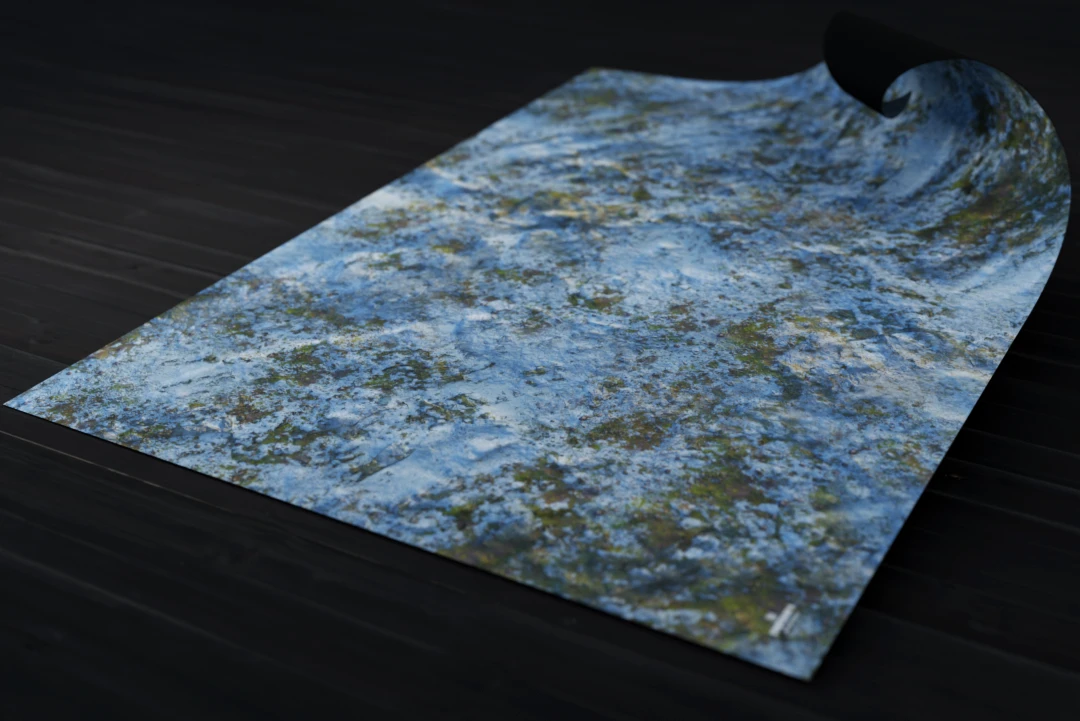 Neoprene gaming mat of a winter landscape. Suitable for most fantasy, sci-fi game and historical settings. Available in variable sizes to suit your game system of choice. *These mats do not have a rubber backing. Avoid folding to prevent crease lines and damage to the mat.